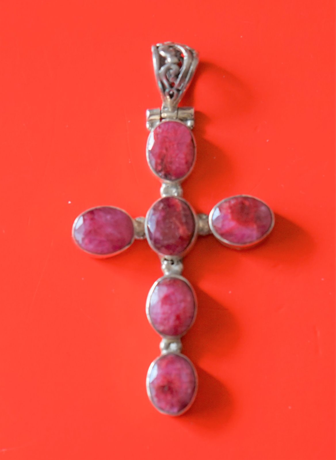 Vintage New Silver Gem Set Crucifix Pendant – Boxed / Ideal Gift / Present