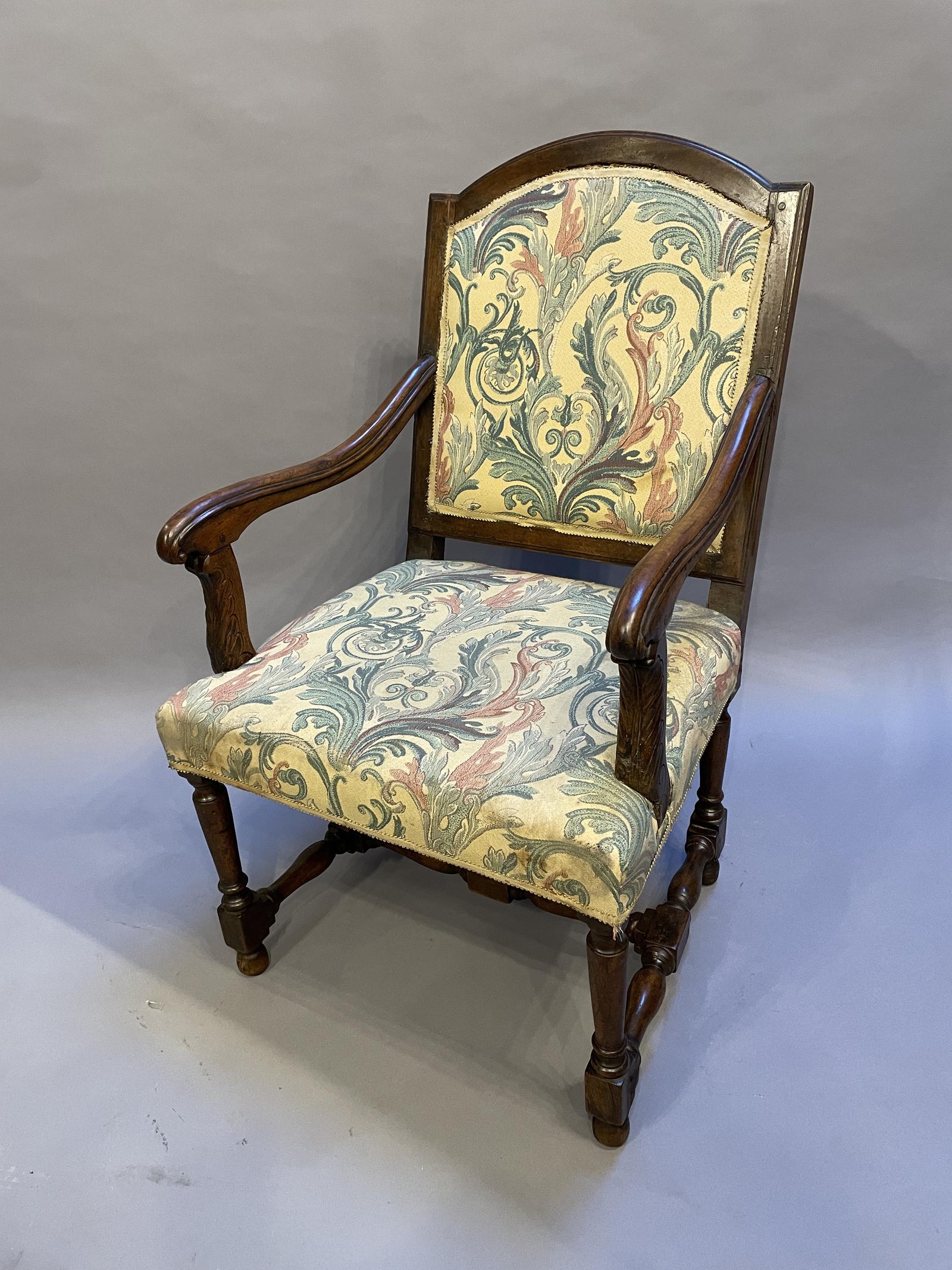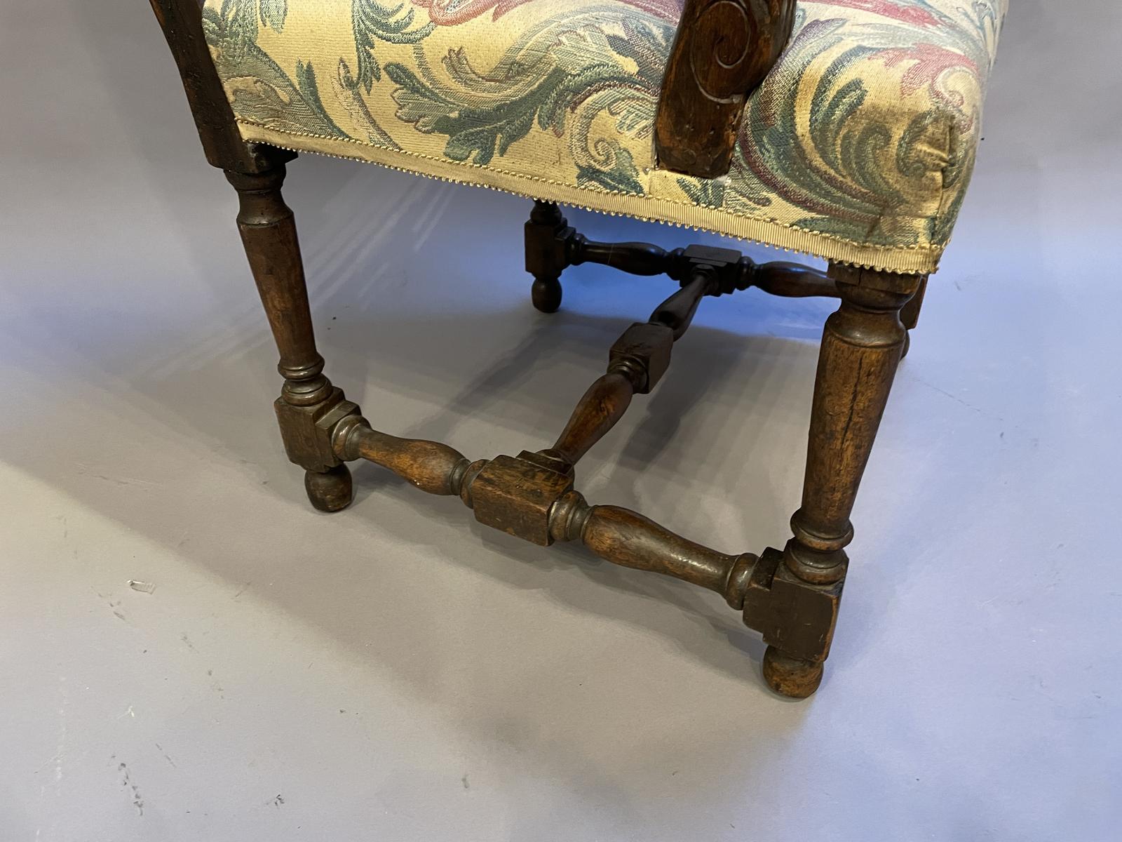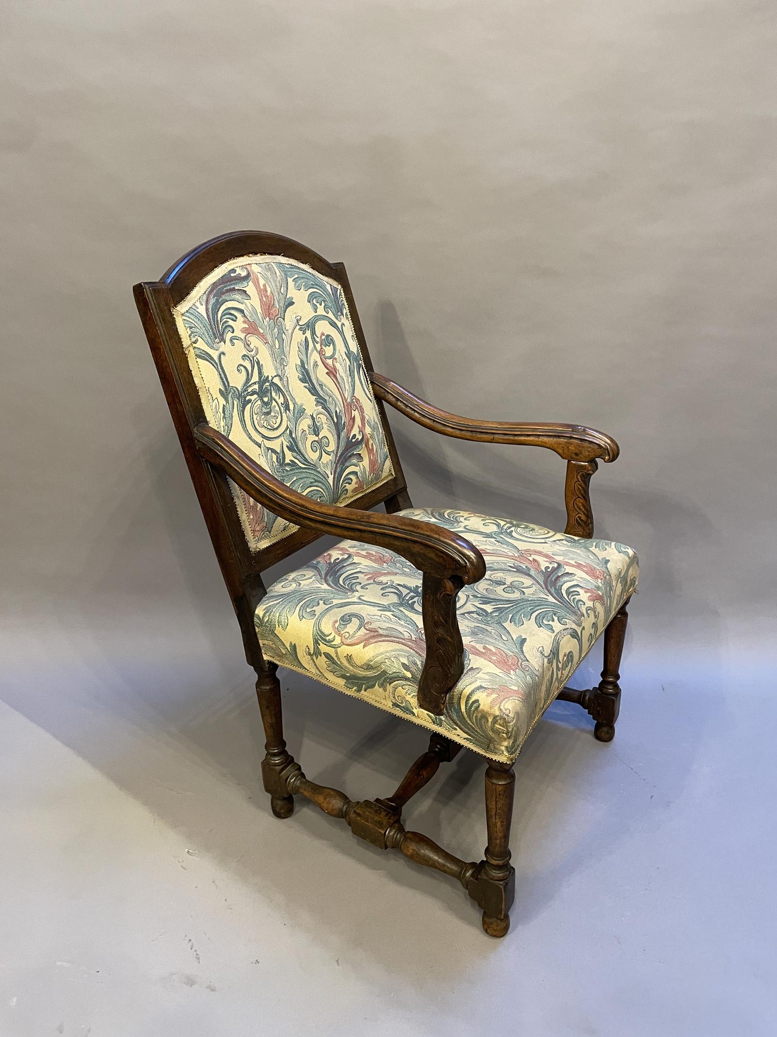 Offered for sale is this 19th Century French antique fauteuil armchair. Provincial walnut, old repairs but sound.