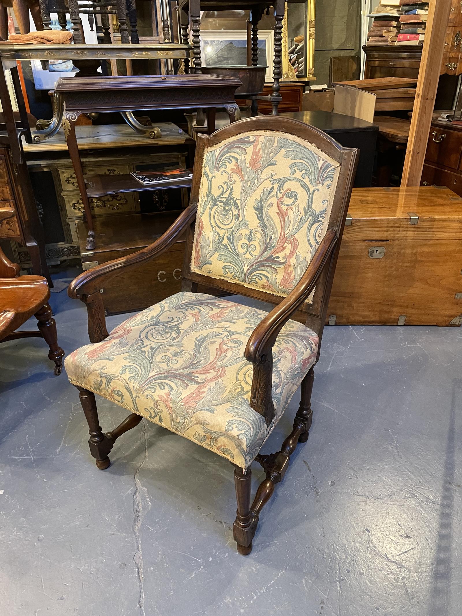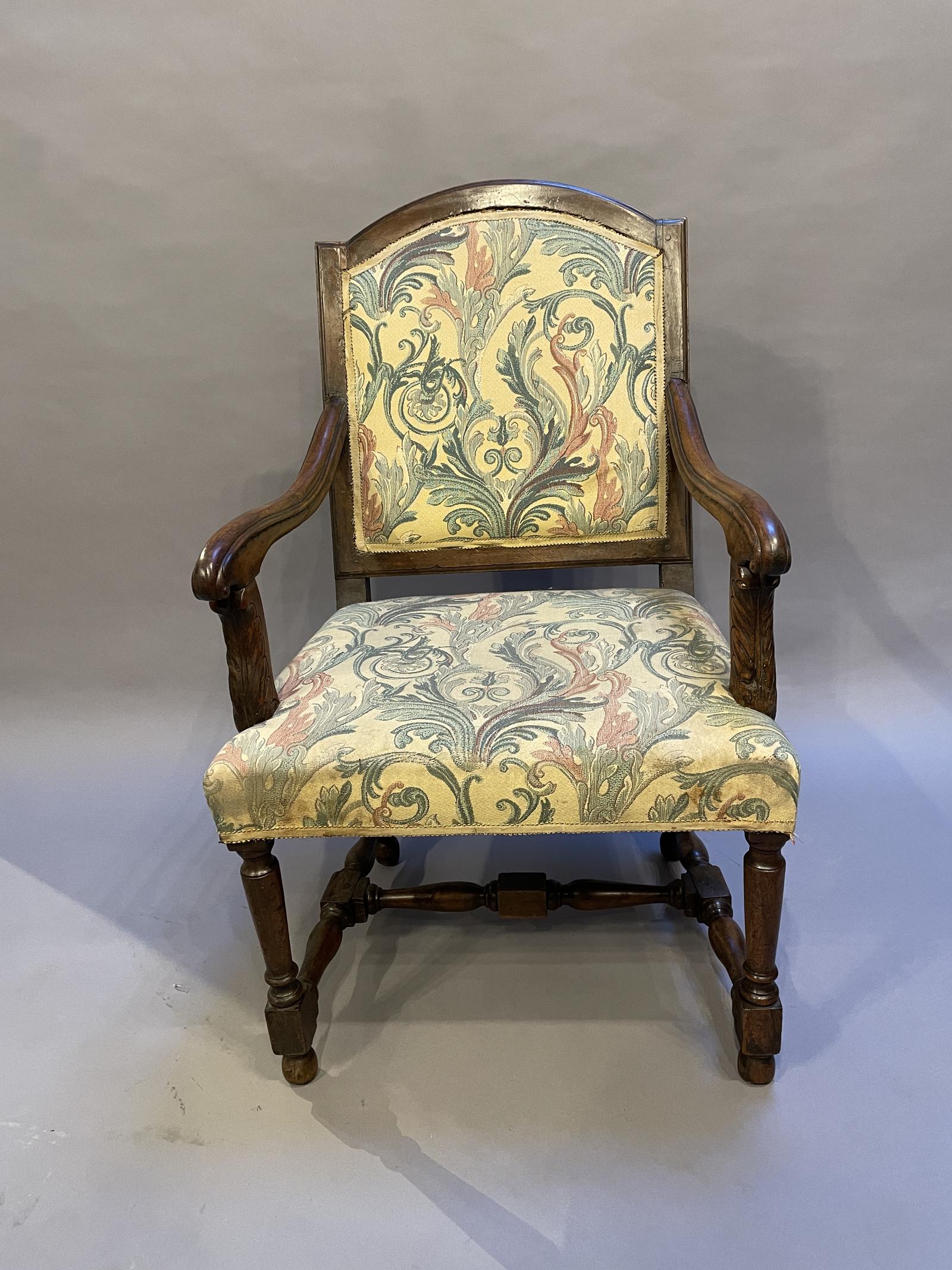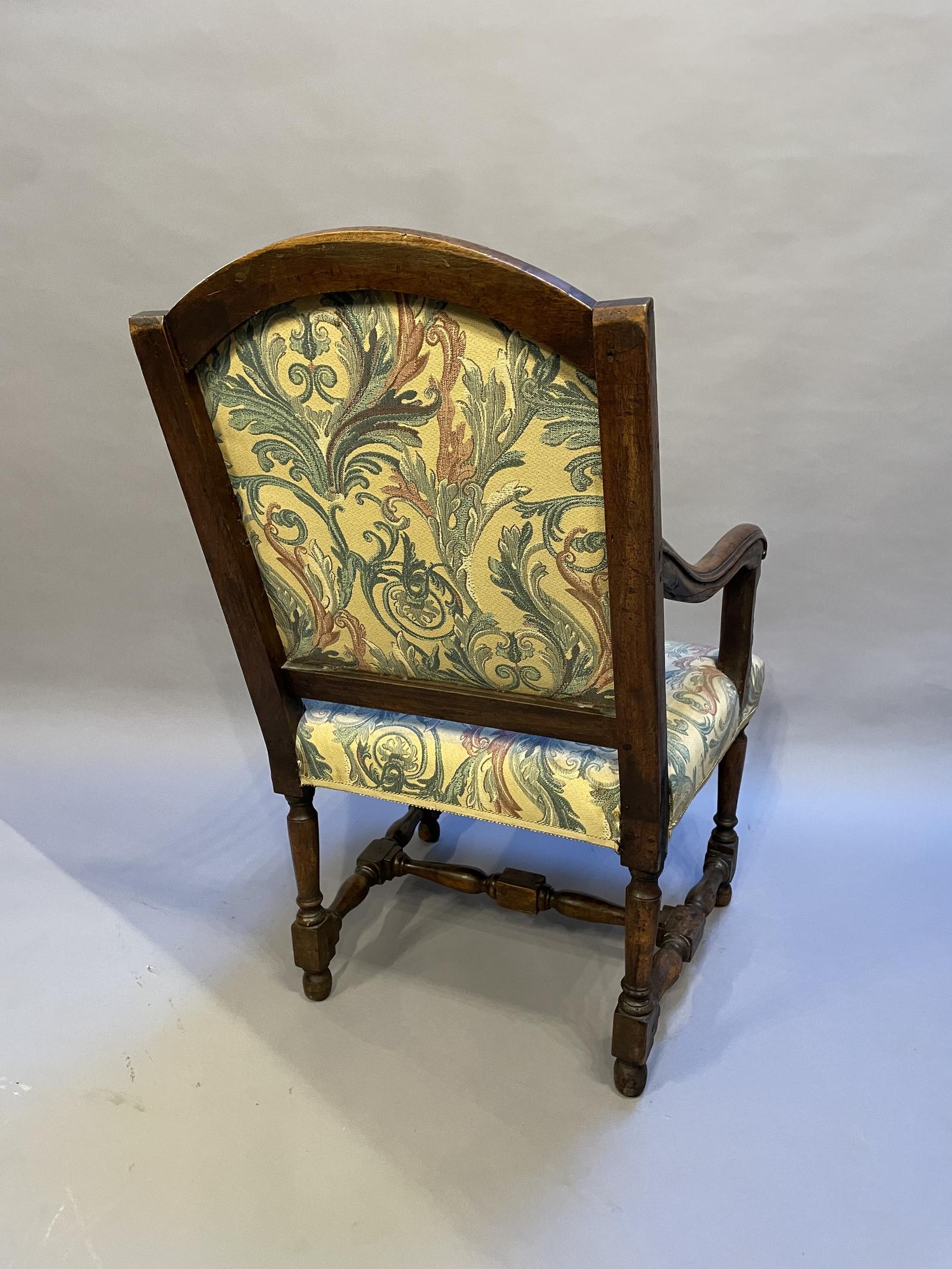 Offered for sale is this 19th Century French antique fauteuil armchair. Provincial walnut, old repairs but sound.