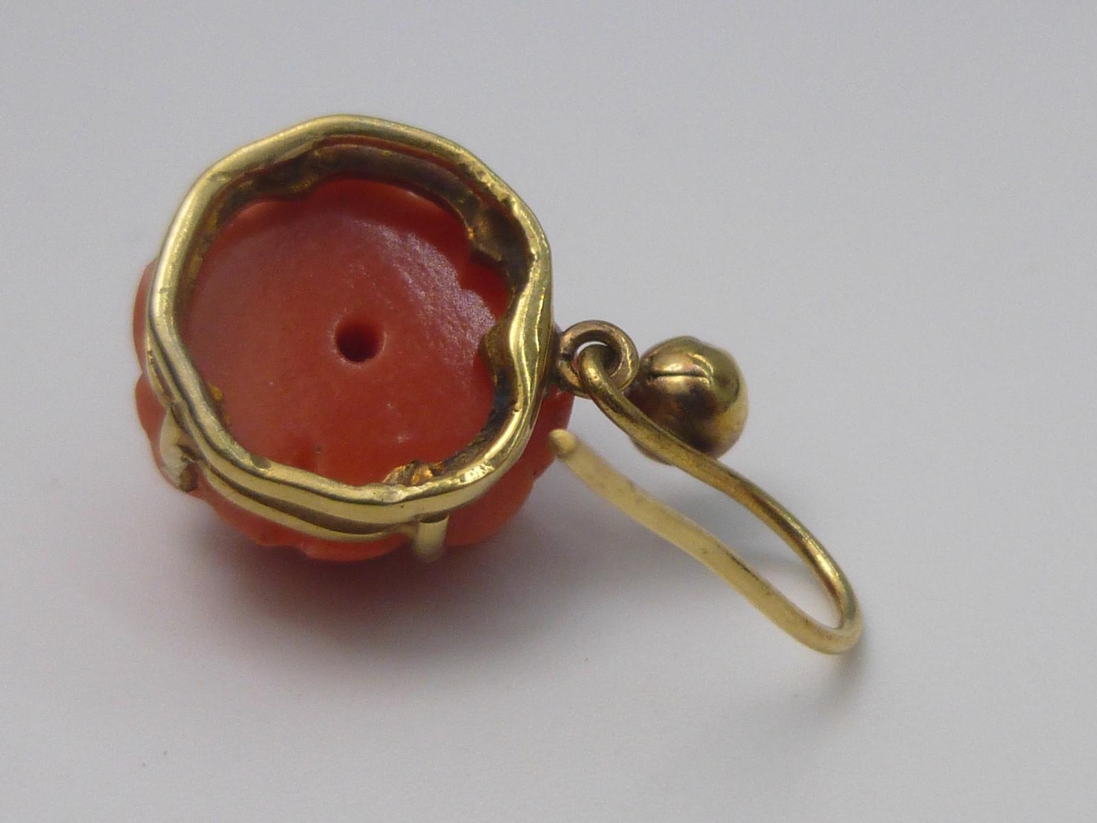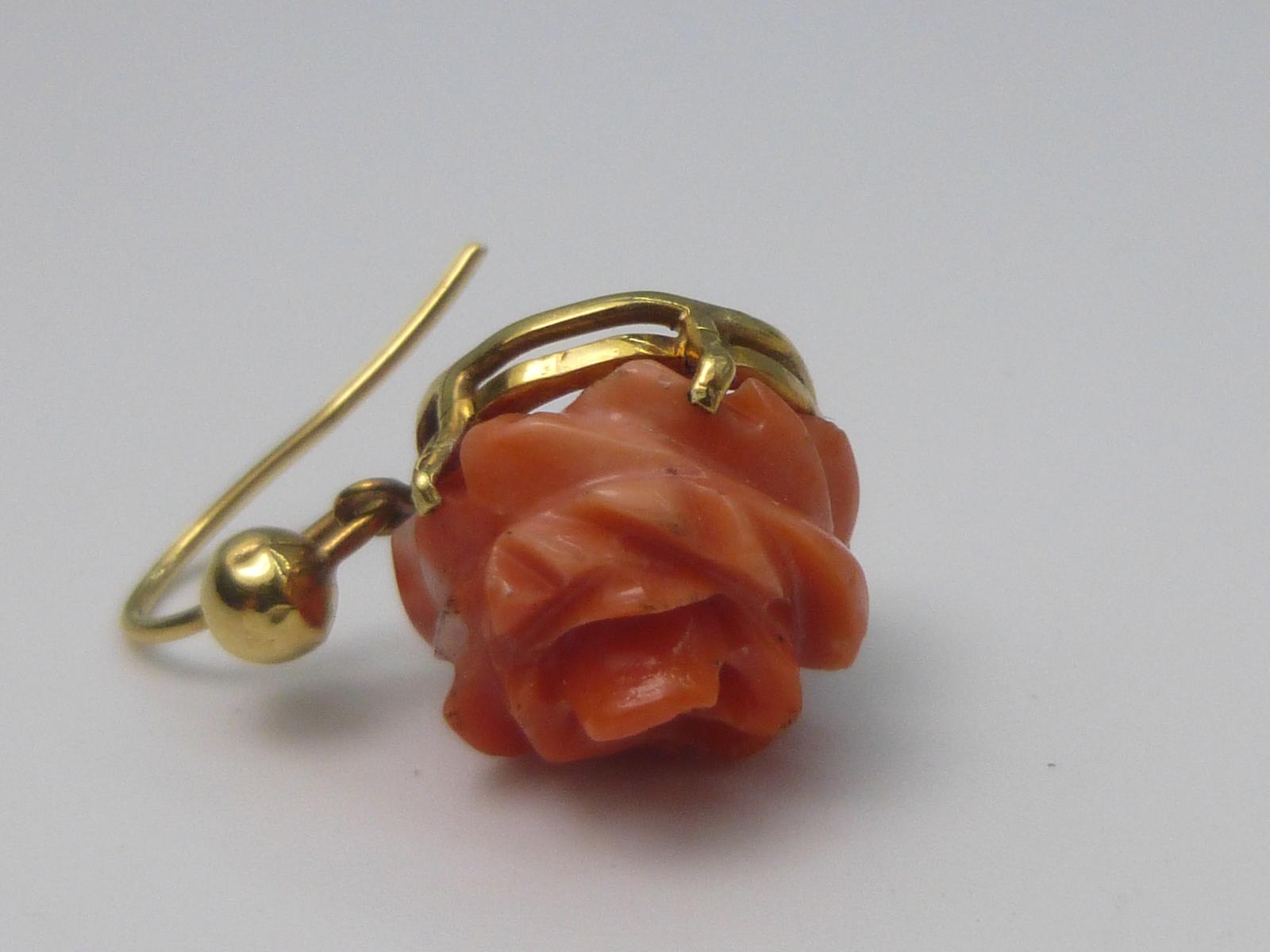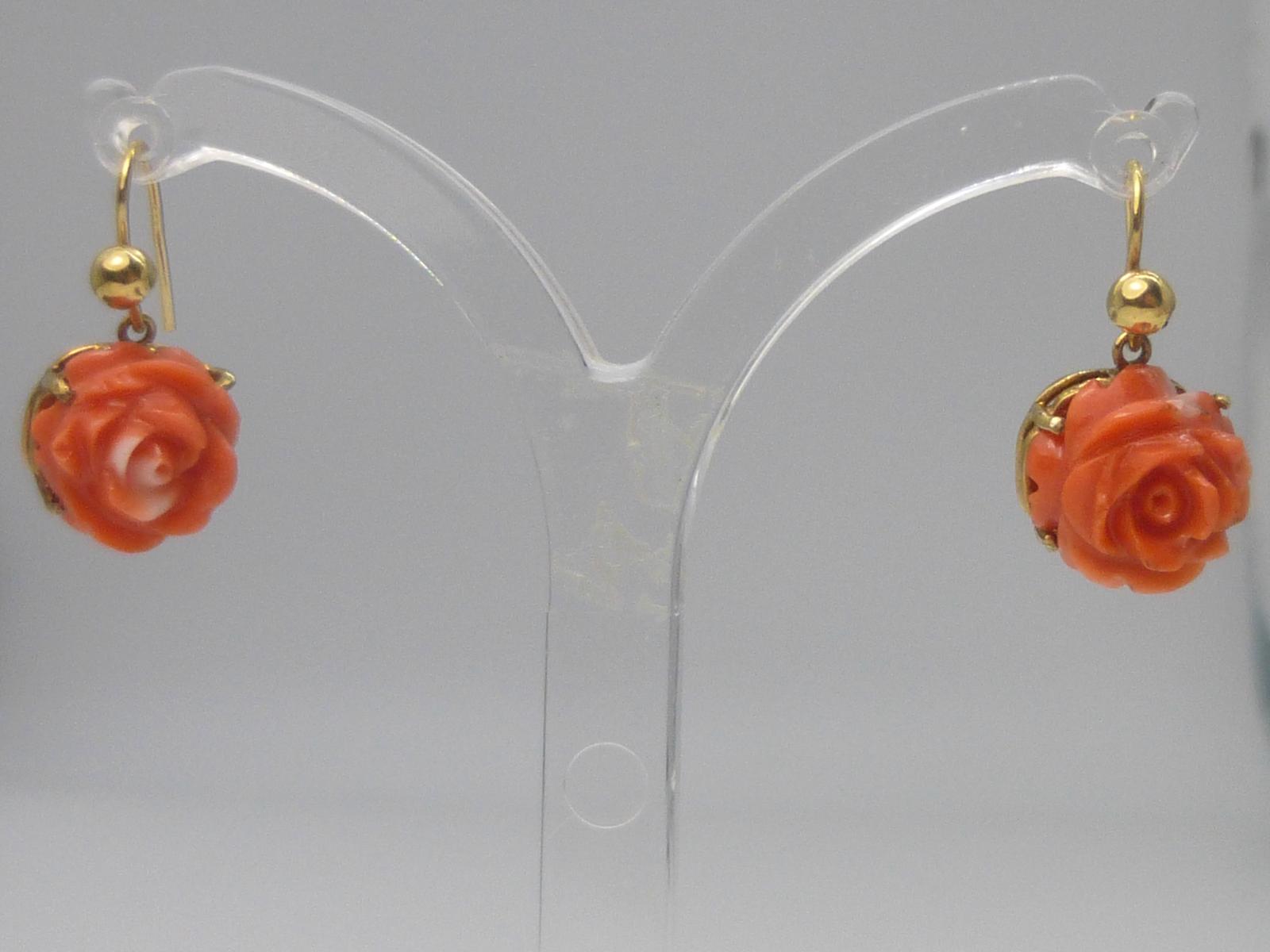 These are a pair of coral and gold earrings, in good condition, commensurate with age and use. Not marked but tested 9ct gold by us. Origin UK, supplied in a modern presentation box.nnPlease press the buy Now button, to pay by debit card, credit card or by Paypal Please ring or e-mail with any further questions. We also accept payment by bank transfer or by cheque.