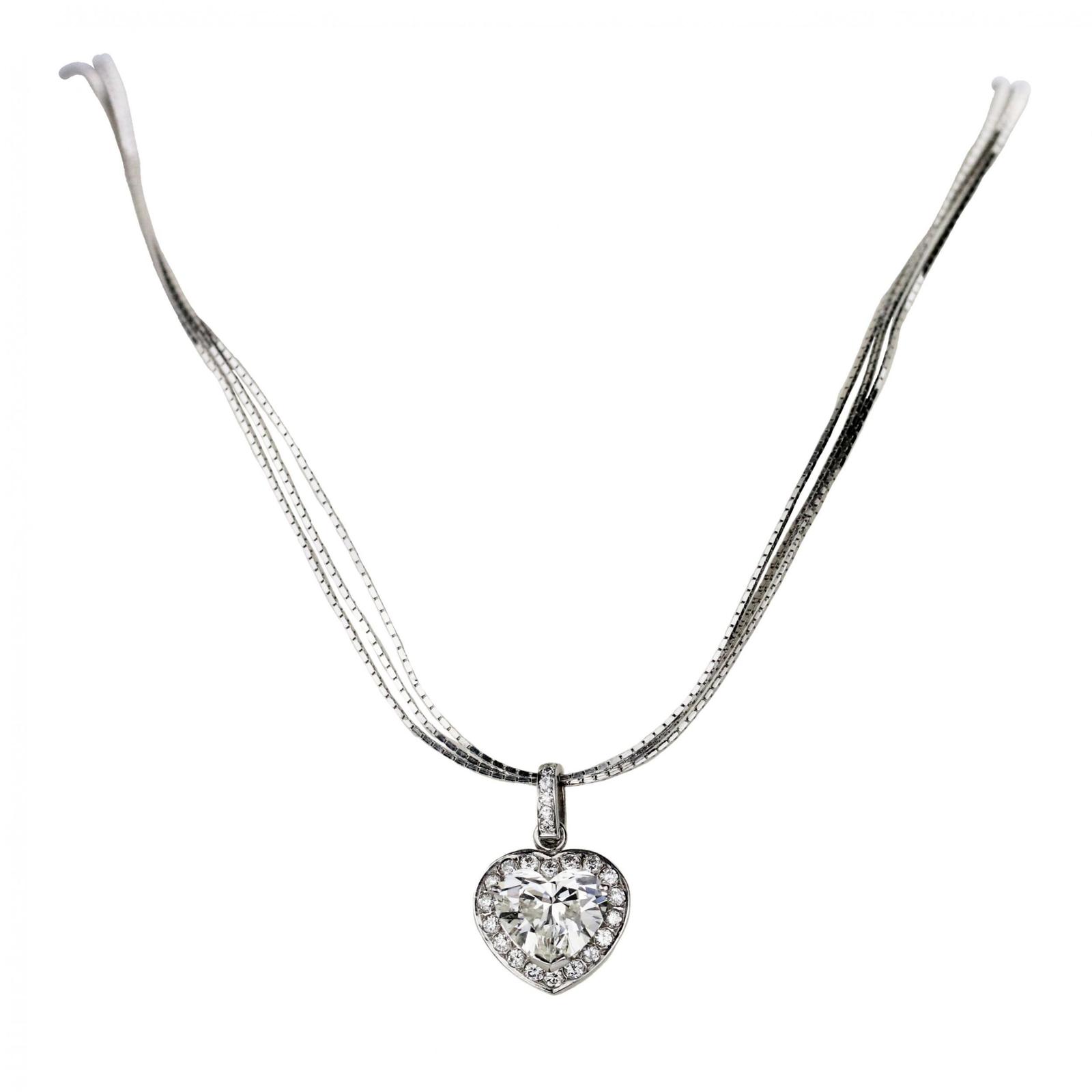 White Gold 18K Pendant Heart with Superb Central Diamond of 3.02 Carats – Vicenza, Italy